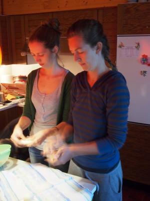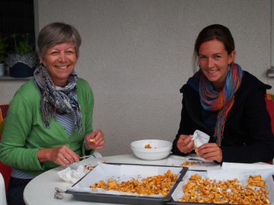 So arbeitet jeder vor sich hin: Axel bereitet seinen Informatikuntericht vor, Susanne transportiert mehrere gelbe Säcke und Papierkisten ab und geht einkaufen, Simone presst Blumen und putzt Eierschwammerln, die sie aus den Tauern mitgebracht hat.